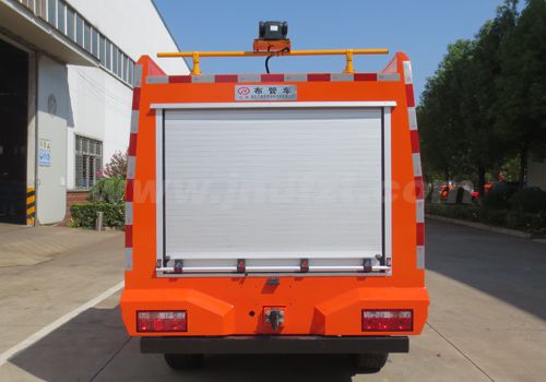 其它 | 侧面防护及后下部防护装置材料材质:Q235,侧面防护装置为整体式结构,后下部防护装置连接方式:螺栓连接,后下部防护装置断面尺寸(宽×高):50×100(mm),离地高度:440mm;侧面及后部作业照明灯仅在车辆作业状态下使用,车辆行驶过程中关闭;ABS型号:DJABS-Y-03,生产厂家:鼎佳(天津)汽车电子有限公司。主要专用装置有水带牵引装置,用于应急供排水时水带的敷设与回收;选装整车外观,选装后部结构,选装内部布局。 | ||