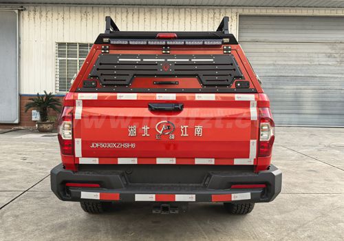 江特牌JDF5030XZHSH6指挥车采用上汽大通汽车有限公司生产的星际L越野版系列柴油四驱双排皮卡(SH1031E6DD-P)改装,采用上海新动力汽车科技股份有限公司SC20M163Q6B型柴油发电机,国六排放标准,额定功率120kw。驾驶室内安装车载电台、车顶安装云台摄像机,可以根据用户需求选装其他通信器材。