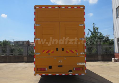 其它 | 该车用于应急供电,主要专用装置为发电机组,电缆绞盘;侧后防护材料材质为Q235,均为整体式结构,后下部防护装置离地高度:460mm;随底盘选装限速装置,限速89km/h;仅采用底盘轮胎295/80R22.5 18PR,11.00R20 18PR,295/60R22.5 18PR;ABS生产厂家:东科克诺尔商用车制动系统(十堰)有限公司,东科克诺尔商用车制动系统(十堰)有限公司;型号:3631010-C2000,ABS 8; 驾驶室顶升降照明灯仅在作业状态下使用,行驶过程中不可使用。 | ||