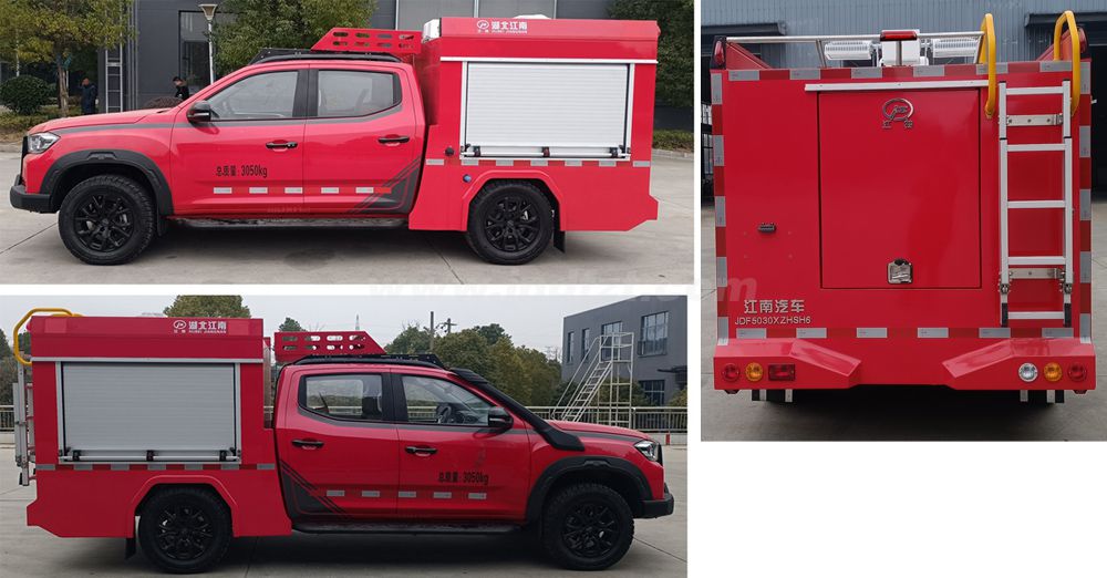 江特牌JDF5030XZHSH6指挥车采用上汽大通汽车有限公司生产的星际L越野版系列柴油四驱双排皮卡(SH1031E6DD-P)改装,采用上海新动力汽车科技股份有限公司SC20M163Q6B型柴油发电机,国六排放标准,额定功率120kw。驾驶室内安装车载电台、车顶安装云台摄像机,可以根据用户需求选装其他通信器材。